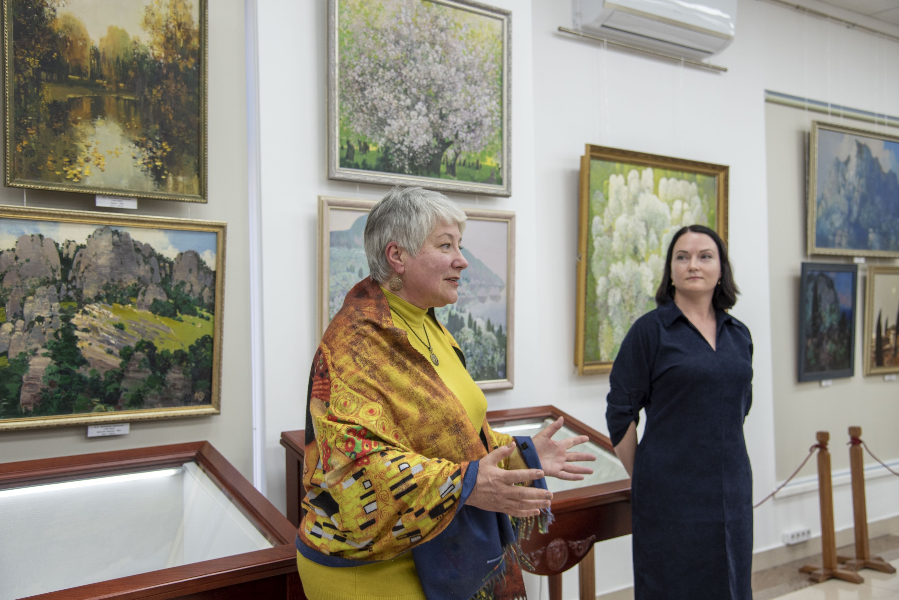 С речью к посетителям обратилась Ольга Дмитриевна Чулочникова, супруга художника. Она подчеркнула, что в работах Юрия Всеволодовича всегда присутствуют внутреннее равновесие, гармония и спокойствие – качества, которые сегодня особенно значимы. Она также отметила его музыкальный и певческий дар, подчеркнув, что любовь к музыке была неотъемлемой частью его жизни и творчества.